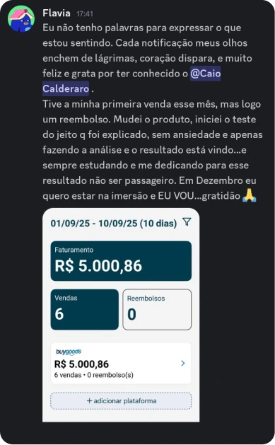 Meu nome é Caio Calderaro, tenho 34 anos, sou casado, cristão, pai, palestrante, mentor e empresário. Antes de chegar até aqui, virei a conta no negativo várias vezes: vendi marmita, roupa, suplemento, tentei de tudo, mas vivia endividado e frustrado, mesmo seguindo o “caminho certo” (faculdade, estágio, CLT).